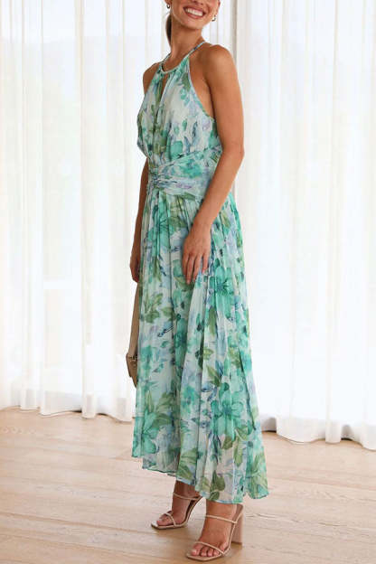 Sunny Forecast Floral Cutout Neck Pleated Midi Dress